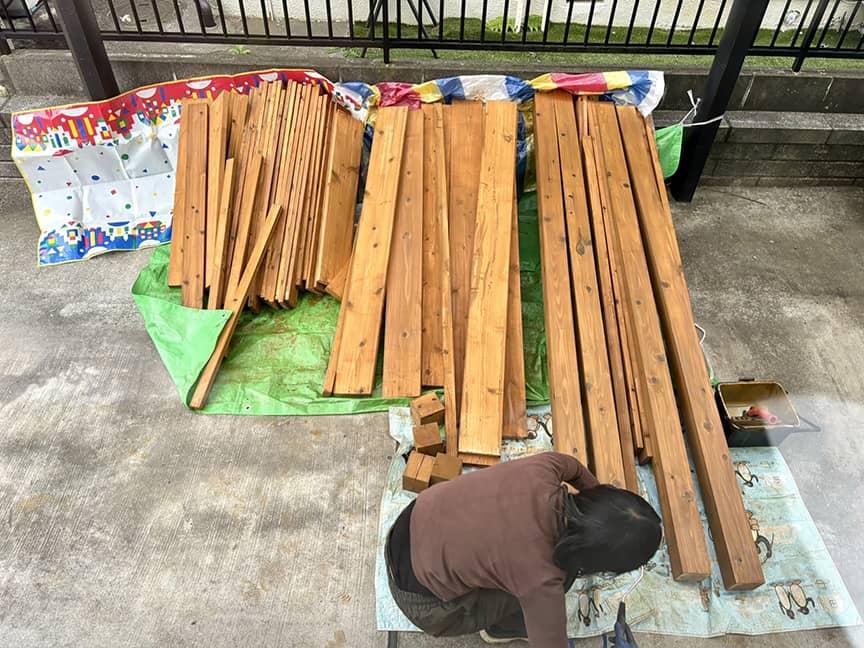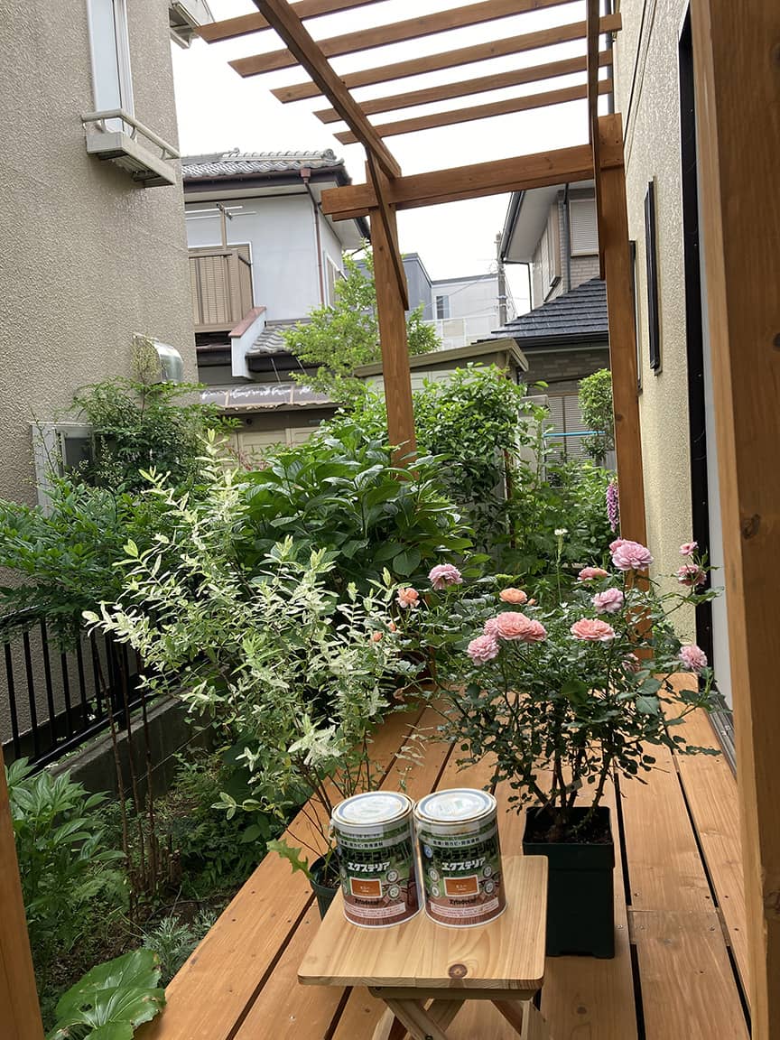 DIY事例集TOPへ 条件を指定して検索 カラー検索 全て クリア系 白系 黄色系 オレンジ系 明るい茶系 濃い茶系 黒系 緑系 グレー系 赤系 青系 下塗り用 カラー検索でどの系統の色にどの製品のどの色目が含まれているのかを以下のリンクでご確認いただけます。 制作物の種類 全て ウッドデッキ 外壁・ウッドフェンス テーブル・ベンチ 花台・小物 小屋・物置・その他 キーワード検索 検索する ホーム>DIY事例集トップ>水性キシラデコールエクステリア ウッドデッキ コメントウッドデッキを作ったらとても素敵になりました。今はここでお茶を飲みながら、庭の樹木や花を眺めるのが楽しみとなっています。この場所は灰色のコンクリートだったので、明るくしたくてピニーを使いました。庭の植物たちと自然に溶け込むイメージ通りの色だったので、とても嬉しいです。ありがとうございました。 製品名水性キシラデコールエクステリア カラーピニー キシラデコール 50年以上の実績が語るプロが認めた仕上がりと耐久性 発売以来50年以上の実績を持つ木材保護塗料の定番ブランド。多くの採用実績が高い防腐・防カビ・防虫効果を証明しています。 キシラデコールアクオステージ高い着色力によりさらなる耐久性を実現! 耐候性に優れた顔料を高濃度に配合し、「高着色」と「高耐久」を実現。メンテナンスにも最適です。 キシラデコールフォレステージHSキシラデコールフォレステージの顔料を高濃度に配合! キシラデコールフォレステージの性能はそのままに、高着色の新商品。耐候性も高く、塗り替えに適しています。 キシラデコールフォレステージキシラデコールの性能をそのままに乾燥時間の短縮と低臭性を実現 新処方により、優れた「乾燥性」と「低臭性」を実現した新しいタイプの木材保護塗料です。 キシラデコールやすらぎ ナチュラルで透明感のある仕上り 木の色や質感、木目の美しさをそのまま生かした、透明感のある仕上がりを実現しました。 キシラデコールコンゾラン よみがえる「強さ」と「美しさ」 塗膜の質を徹底的に追及しました。「強さ」と「美しさ」を兼ね備えた塗料です。 キシラデコールインテリアファイン 内外揃うキシラデコールカラー キシラデコールインテリアファイントップコート 木目を活かしたクリアー仕上げ キシラデコールインテリアファインを美しく保護するトップコートです。 キシラデコール白木やすらぎ 白木の美しい風合いを生かしながら変色・劣化から守る キシラデコールの性能にUV(紫外線)カット効果をプラス。白木の風合いを生かしながら木部の劣化・変色を防ぎます。 水性キシラデコールエクステリア 環境にやさしい水性タイプのキシラデコール 水性キシラデコールエクステリアは、油性キシラデコールと同レベルの耐久性をもちつつも、より環境にやさしく、使いやすい商品です。水性キシラデコールエクステリアで、エコで快適な塗装を。 水性キシラデコールウッドコート 特殊な塗膜(半造膜)で明るく仕上がり高耐久! 塗膜の3大特長(柔軟性・通気性・密着性)により、業界最高クラスの耐久性を発揮します。 また、色つきが良く、古材や濃い色の木材でも明るく仕上げることができ、塗り替えに最適です。 コンゾラン 抜群の耐久性で木部を守る、環境にやさしい水性ペイント 鮮やかなヨーロピアンカラーがラインアップ。柔軟な塗膜で木材を守ります。