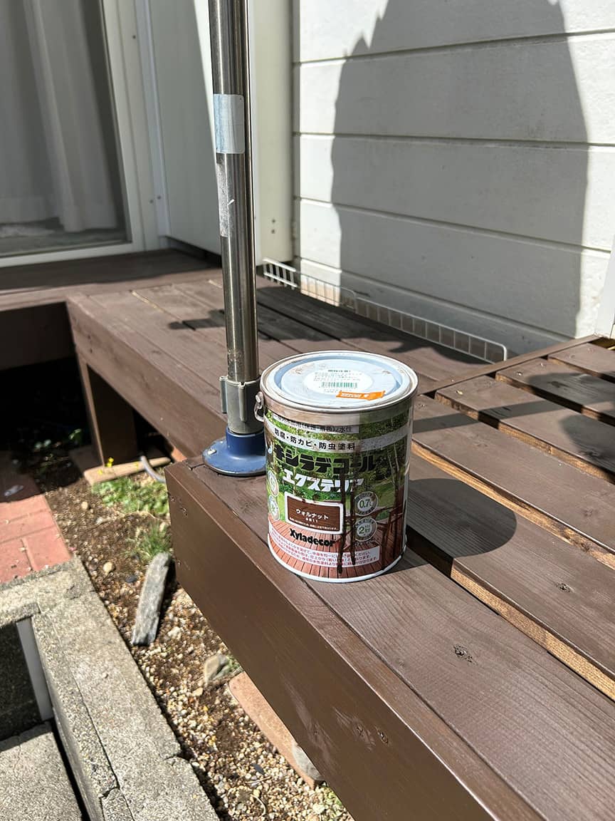 DIY事例集TOPへ 条件を指定して検索 カラー検索 全て クリア系 白系 黄色系 オレンジ系 明るい茶系 濃い茶系 黒系 緑系 グレー系 赤系 青系 下塗り用 カラー検索でどの系統の色にどの製品のどの色目が含まれているのかを以下のリンクでご確認いただけます。 制作物の種類 全て ウッドデッキ 外壁・ウッドフェンス テーブル・ベンチ 花台・小物 小屋・物置・その他 キーワード検索 検索する ホーム>DIY事例集トップ>水性キシラデコールエクステリア ウッドデッキ コメントいつもは油性のキシラデコールを使用していたが、今回は水性のキシラデコールを使用して見ました。乾きは遅いですが、作業性も良く後片付けも楽で満足です。 製品名水性キシラデコールエクステリア カラーウォルナット キシラデコール 50年以上の実績が語るプロが認めた仕上がりと耐久性 発売以来50年以上の実績を持つ木材保護塗料の定番ブランド。多くの採用実績が高い防腐・防カビ・防虫効果を証明しています。 キシラデコールアクオステージ高い着色力によりさらなる耐久性を実現! 耐候性に優れた顔料を高濃度に配合し、「高着色」と「高耐久」を実現。メンテナンスにも最適です。 キシラデコールフォレステージHSキシラデコールフォレステージの顔料を高濃度に配合! キシラデコールフォレステージの性能はそのままに、高着色の新商品。耐候性も高く、塗り替えに適しています。 キシラデコールフォレステージキシラデコールの性能をそのままに乾燥時間の短縮と低臭性を実現 新処方により、優れた「乾燥性」と「低臭性」を実現した新しいタイプの木材保護塗料です。 キシラデコールやすらぎ ナチュラルで透明感のある仕上り 木の色や質感、木目の美しさをそのまま生かした、透明感のある仕上がりを実現しました。 キシラデコールコンゾラン よみがえる「強さ」と「美しさ」 塗膜の質を徹底的に追及しました。「強さ」と「美しさ」を兼ね備えた塗料です。 キシラデコールインテリアファイン 内外揃うキシラデコールカラー キシラデコールインテリアファイントップコート 木目を活かしたクリアー仕上げ キシラデコールインテリアファインを美しく保護するトップコートです。 キシラデコール白木やすらぎ 白木の美しい風合いを生かしながら変色・劣化から守る キシラデコールの性能にUV(紫外線)カット効果をプラス。白木の風合いを生かしながら木部の劣化・変色を防ぎます。 水性キシラデコールエクステリア 環境にやさしい水性タイプのキシラデコール 水性キシラデコールエクステリアは、油性キシラデコールと同レベルの耐久性をもちつつも、より環境にやさしく、使いやすい商品です。水性キシラデコールエクステリアで、エコで快適な塗装を。 水性キシラデコールウッドコート 特殊な塗膜(半造膜)で明るく仕上がり高耐久! 塗膜の3大特長(柔軟性・通気性・密着性)により、業界最高クラスの耐久性を発揮します。 また、色つきが良く、古材や濃い色の木材でも明るく仕上げることができ、塗り替えに最適です。 コンゾラン 抜群の耐久性で木部を守る、環境にやさしい水性ペイント 鮮やかなヨーロピアンカラーがラインアップ。柔軟な塗膜で木材を守ります。