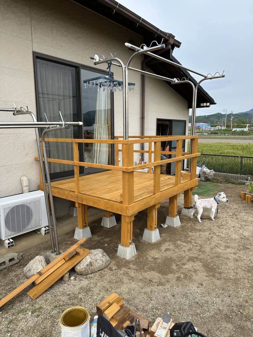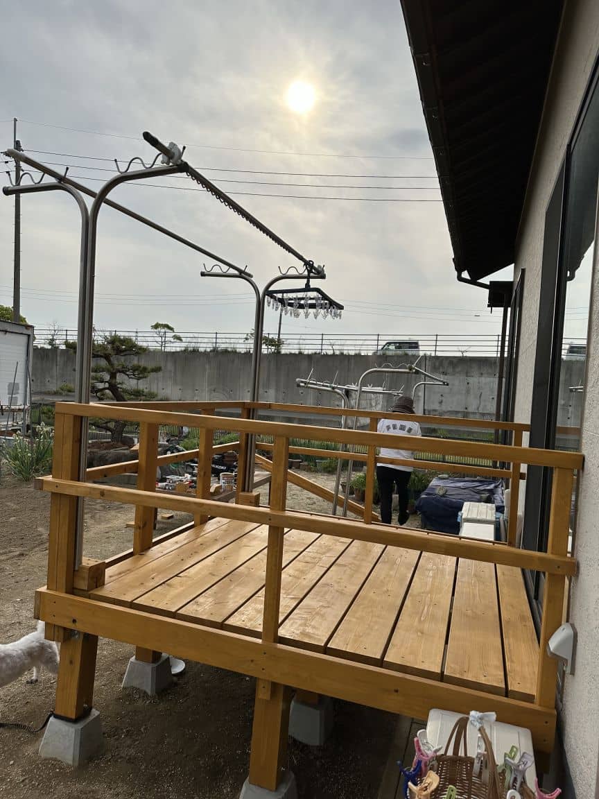 DIY事例集TOPへ 条件を指定して検索 カラー検索 全て クリア系 白系 黄色系 オレンジ系 明るい茶系 濃い茶系 黒系 緑系 グレー系 赤系 青系 下塗り用 カラー検索でどの系統の色にどの製品のどの色目が含まれているのかを以下のリンクでご確認いただけます。 制作物の種類 全て ウッドデッキ 外壁・ウッドフェンス テーブル・ベンチ 花台・小物 小屋・物置・その他 キーワード検索 検索する ホーム>DIY事例集トップ>油性キシラデコール ウッドデッキ(物干しデッキ) コメント足の悪い義母のために、部屋から直接出られる物干しデッキ作りました。 製品名油性キシラデコール カラースプルース キシラデコール 50年以上の実績が語るプロが認めた仕上がりと耐久性 発売以来50年以上の実績を持つ木材保護塗料の定番ブランド。多くの採用実績が高い防腐・防カビ・防虫効果を証明しています。 キシラデコールアクオステージ高い着色力によりさらなる耐久性を実現! 耐候性に優れた顔料を高濃度に配合し、「高着色」と「高耐久」を実現。メンテナンスにも最適です。 キシラデコールフォレステージHSキシラデコールフォレステージの顔料を高濃度に配合! キシラデコールフォレステージの性能はそのままに、高着色の新商品。耐候性も高く、塗り替えに適しています。 キシラデコールフォレステージキシラデコールの性能をそのままに乾燥時間の短縮と低臭性を実現 新処方により、優れた「乾燥性」と「低臭性」を実現した新しいタイプの木材保護塗料です。 キシラデコールやすらぎ ナチュラルで透明感のある仕上り 木の色や質感、木目の美しさをそのまま生かした、透明感のある仕上がりを実現しました。 キシラデコールコンゾラン よみがえる「強さ」と「美しさ」 塗膜の質を徹底的に追及しました。「強さ」と「美しさ」を兼ね備えた塗料です。 キシラデコールインテリアファイン 内外揃うキシラデコールカラー キシラデコールインテリアファイントップコート 木目を活かしたクリアー仕上げ キシラデコールインテリアファインを美しく保護するトップコートです。 キシラデコール白木やすらぎ 白木の美しい風合いを生かしながら変色・劣化から守る キシラデコールの性能にUV(紫外線)カット効果をプラス。白木の風合いを生かしながら木部の劣化・変色を防ぎます。 水性キシラデコールエクステリア 環境にやさしい水性タイプのキシラデコール 水性キシラデコールエクステリアは、油性キシラデコールと同レベルの耐久性をもちつつも、より環境にやさしく、使いやすい商品です。水性キシラデコールエクステリアで、エコで快適な塗装を。 水性キシラデコールウッドコート 特殊な塗膜(半造膜)で明るく仕上がり高耐久! 塗膜の3大特長(柔軟性・通気性・密着性)により、業界最高クラスの耐久性を発揮します。 また、色つきが良く、古材や濃い色の木材でも明るく仕上げることができ、塗り替えに最適です。 コンゾラン 抜群の耐久性で木部を守る、環境にやさしい水性ペイント 鮮やかなヨーロピアンカラーがラインアップ。柔軟な塗膜で木材を守ります。