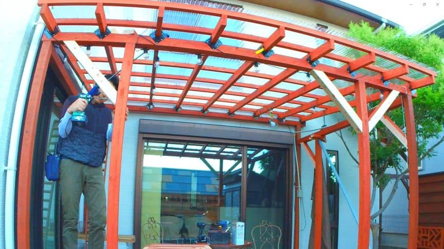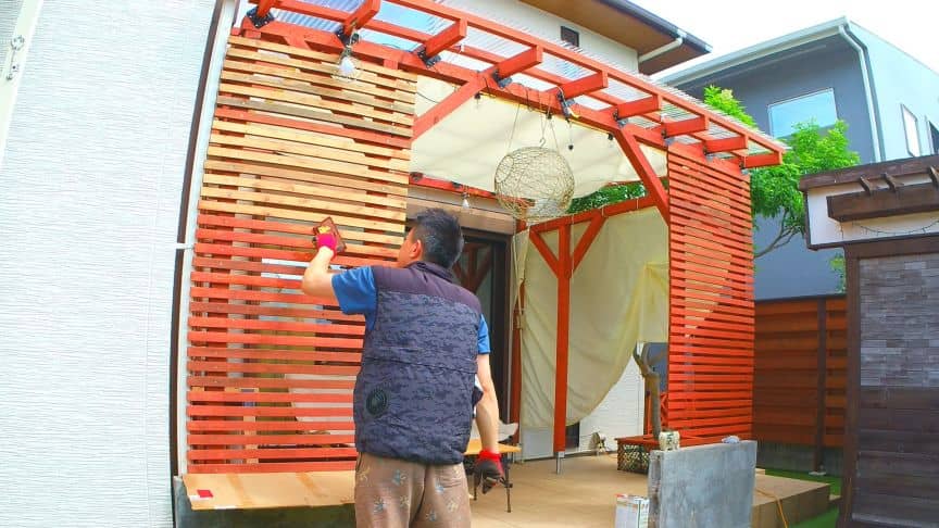 DIY事例集TOPへ 条件を指定して検索 カラー検索 全て クリア系 白系 黄色系 オレンジ系 明るい茶系 濃い茶系 黒系 緑系 グレー系 赤系 青系 下塗り用 カラー検索でどの系統の色にどの製品のどの色目が含まれているのかを以下のリンクでご確認いただけます。 制作物の種類 全て ウッドデッキ 外壁・ウッドフェンス テーブル・ベンチ 花台・小物 小屋・物置・その他 キーワード検索 検索する ホーム>DIY事例集トップ>油性キシラデコール パーゴラ(ウッドテラス) コメント今回、憧れのヒロミさんの影響でHiKOKIの電動工具を愛用してテラスに屋根を設置しました。これまで他社塗料を使っていましたが、ヒロミさんがYouTubeで紹介していたキシラデコールを初めて使いました。塗りやすさと仕上がりの美しさに感動!木材の風合いを活かしながらしっかり保護できるので、今後も愛用決定です。 製品名油性キシラデコール カラーマホガ二 キシラデコール 50年以上の実績が語るプロが認めた仕上がりと耐久性 発売以来50年以上の実績を持つ木材保護塗料の定番ブランド。多くの採用実績が高い防腐・防カビ・防虫効果を証明しています。 キシラデコールアクオステージ高い着色力によりさらなる耐久性を実現! 耐候性に優れた顔料を高濃度に配合し、「高着色」と「高耐久」を実現。メンテナンスにも最適です。 キシラデコールフォレステージHSキシラデコールフォレステージの顔料を高濃度に配合! キシラデコールフォレステージの性能はそのままに、高着色の新商品。耐候性も高く、塗り替えに適しています。 キシラデコールフォレステージキシラデコールの性能をそのままに乾燥時間の短縮と低臭性を実現 新処方により、優れた「乾燥性」と「低臭性」を実現した新しいタイプの木材保護塗料です。 キシラデコールやすらぎ ナチュラルで透明感のある仕上り 木の色や質感、木目の美しさをそのまま生かした、透明感のある仕上がりを実現しました。 キシラデコールコンゾラン よみがえる「強さ」と「美しさ」 塗膜の質を徹底的に追及しました。「強さ」と「美しさ」を兼ね備えた塗料です。 キシラデコールインテリアファイン 内外揃うキシラデコールカラー キシラデコールインテリアファイントップコート 木目を活かしたクリアー仕上げ キシラデコールインテリアファインを美しく保護するトップコートです。 キシラデコール白木やすらぎ 白木の美しい風合いを生かしながら変色・劣化から守る キシラデコールの性能にUV(紫外線)カット効果をプラス。白木の風合いを生かしながら木部の劣化・変色を防ぎます。 水性キシラデコールエクステリア 環境にやさしい水性タイプのキシラデコール 水性キシラデコールエクステリアは、油性キシラデコールと同レベルの耐久性をもちつつも、より環境にやさしく、使いやすい商品です。水性キシラデコールエクステリアで、エコで快適な塗装を。 水性キシラデコールウッドコート 特殊な塗膜(半造膜)で明るく仕上がり高耐久! 塗膜の3大特長(柔軟性・通気性・密着性)により、業界最高クラスの耐久性を発揮します。 また、色つきが良く、古材や濃い色の木材でも明るく仕上げることができ、塗り替えに最適です。 コンゾラン 抜群の耐久性で木部を守る、環境にやさしい水性ペイント 鮮やかなヨーロピアンカラーがラインアップ。柔軟な塗膜で木材を守ります。