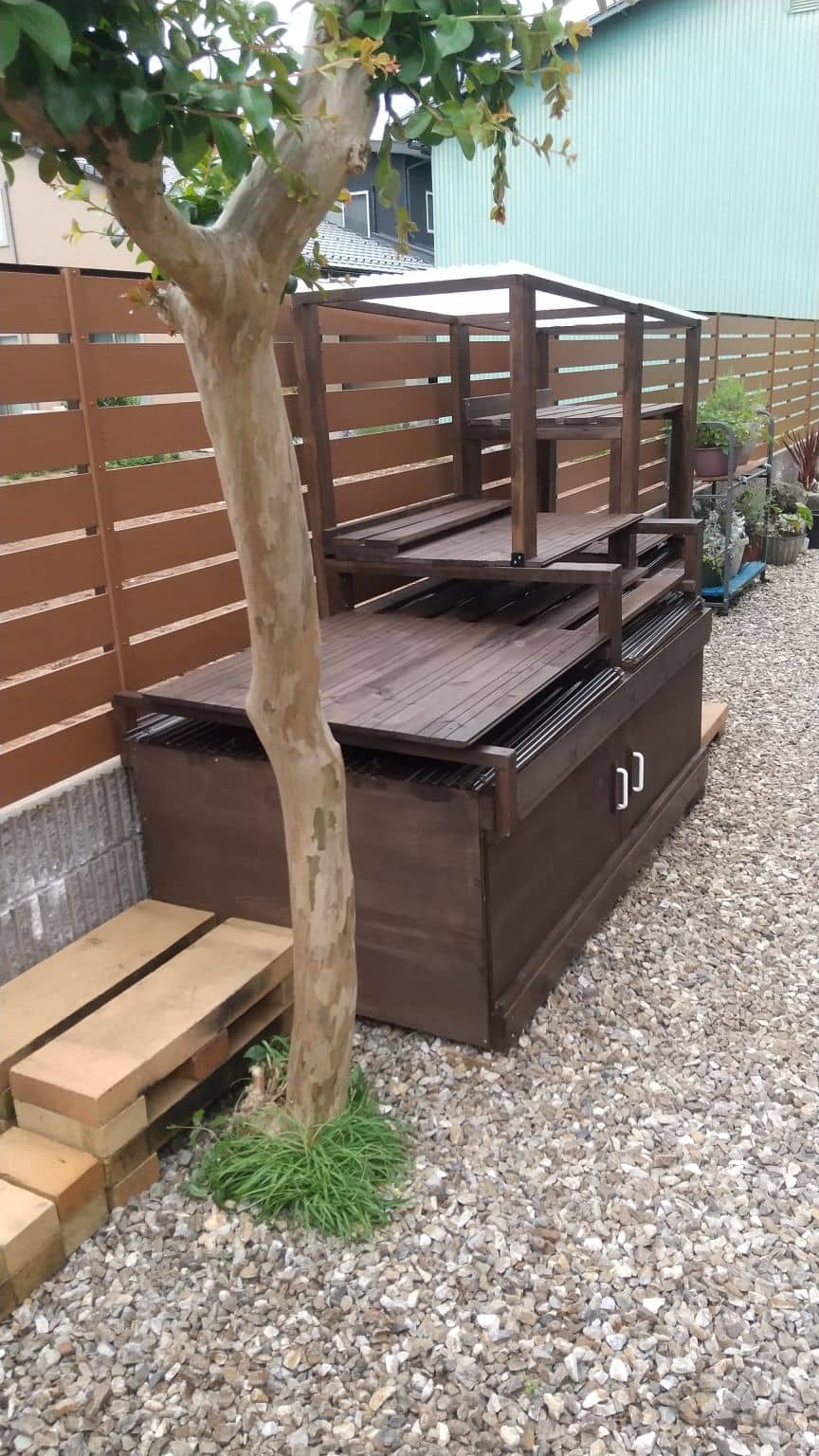 DIY事例集TOPへ 条件を指定して検索 カラー検索 全て クリア系 白系 黄色系 オレンジ系 明るい茶系 濃い茶系 黒系 緑系 グレー系 赤系 青系 下塗り用 カラー検索でどの系統の色にどの製品のどの色目が含まれているのかを以下のリンクでご確認いただけます。 制作物の種類 全て ウッドデッキ 外壁・ウッドフェンス テーブル・ベンチ 花台・小物 小屋・物置・その他 キーワード検索 検索する ホーム>DIY事例集トップ>油性キシラデコール 多肉植物棚 コメント64歳のDIY好きです。多肉植物の棚をつくりました。4月から始めて猛暑で中断、ようやく完成しました。パリサンダ色はとても気に入っています。大1缶、小1缶使いました。DIYの腕はまだまだですがキシラデコールを塗ると、なぜか上手に見えます。 製品名油性キシラデコール カラーパリサンダ キシラデコール 50年以上の実績が語るプロが認めた仕上がりと耐久性 発売以来50年以上の実績を持つ木材保護塗料の定番ブランド。多くの採用実績が高い防腐・防カビ・防虫効果を証明しています。 キシラデコールアクオステージ高い着色力によりさらなる耐久性を実現! 耐候性に優れた顔料を高濃度に配合し、「高着色」と「高耐久」を実現。メンテナンスにも最適です。 キシラデコールフォレステージHSキシラデコールフォレステージの顔料を高濃度に配合! キシラデコールフォレステージの性能はそのままに、高着色の新商品。耐候性も高く、塗り替えに適しています。 キシラデコールフォレステージキシラデコールの性能をそのままに乾燥時間の短縮と低臭性を実現 新処方により、優れた「乾燥性」と「低臭性」を実現した新しいタイプの木材保護塗料です。 キシラデコールやすらぎ ナチュラルで透明感のある仕上り 木の色や質感、木目の美しさをそのまま生かした、透明感のある仕上がりを実現しました。 キシラデコールコンゾラン よみがえる「強さ」と「美しさ」 塗膜の質を徹底的に追及しました。「強さ」と「美しさ」を兼ね備えた塗料です。 キシラデコールインテリアファイン 内外揃うキシラデコールカラー キシラデコールインテリアファイントップコート 木目を活かしたクリアー仕上げ キシラデコールインテリアファインを美しく保護するトップコートです。 キシラデコール白木やすらぎ 白木の美しい風合いを生かしながら変色・劣化から守る キシラデコールの性能にUV(紫外線)カット効果をプラス。白木の風合いを生かしながら木部の劣化・変色を防ぎます。 水性キシラデコールエクステリア 環境にやさしい水性タイプのキシラデコール 水性キシラデコールエクステリアは、油性キシラデコールと同レベルの耐久性をもちつつも、より環境にやさしく、使いやすい商品です。水性キシラデコールエクステリアで、エコで快適な塗装を。 水性キシラデコールウッドコート 特殊な塗膜(半造膜)で明るく仕上がり高耐久! 塗膜の3大特長(柔軟性・通気性・密着性)により、業界最高クラスの耐久性を発揮します。 また、色つきが良く、古材や濃い色の木材でも明るく仕上げることができ、塗り替えに最適です。 コンゾラン 抜群の耐久性で木部を守る、環境にやさしい水性ペイント 鮮やかなヨーロピアンカラーがラインアップ。柔軟な塗膜で木材を守ります。