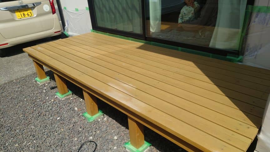 DIY事例集TOPへ 条件を指定して検索 カラー検索 全て クリア系 白系 黄色系 オレンジ系 明るい茶系 濃い茶系 黒系 緑系 グレー系 赤系 青系 下塗り用 カラー検索でどの系統の色にどの製品のどの色目が含まれているのかを以下のリンクでご確認いただけます。 制作物の種類 全て ウッドデッキ 外壁・ウッドフェンス テーブル・ベンチ 花台・小物 小屋・物置・その他 キーワード検索 検索する ホーム>DIY事例集トップ>油性キシラデコール ウッドデッキ コメントウッドデッキと玄関周りの塗り替えをやってみました! 家を建てたときはクリア塗装のみだったので、今回はマホガニを選び雰囲気をガラッと変えてみました! 製品名油性キシラデコール カラーマホガ二 キシラデコール 50年以上の実績が語るプロが認めた仕上がりと耐久性 発売以来50年以上の実績を持つ木材保護塗料の定番ブランド。多くの採用実績が高い防腐・防カビ・防虫効果を証明しています。 キシラデコールアクオステージ高い着色力によりさらなる耐久性を実現! 耐候性に優れた顔料を高濃度に配合し、「高着色」と「高耐久」を実現。メンテナンスにも最適です。 キシラデコールフォレステージHSキシラデコールフォレステージの顔料を高濃度に配合! キシラデコールフォレステージの性能はそのままに、高着色の新商品。耐候性も高く、塗り替えに適しています。 キシラデコールフォレステージキシラデコールの性能をそのままに乾燥時間の短縮と低臭性を実現 新処方により、優れた「乾燥性」と「低臭性」を実現した新しいタイプの木材保護塗料です。 キシラデコールやすらぎ ナチュラルで透明感のある仕上り 木の色や質感、木目の美しさをそのまま生かした、透明感のある仕上がりを実現しました。 キシラデコールコンゾラン よみがえる「強さ」と「美しさ」 塗膜の質を徹底的に追及しました。「強さ」と「美しさ」を兼ね備えた塗料です。 キシラデコールインテリアファイン 内外揃うキシラデコールカラー キシラデコールインテリアファイントップコート 木目を活かしたクリアー仕上げ キシラデコールインテリアファインを美しく保護するトップコートです。 キシラデコール白木やすらぎ 白木の美しい風合いを生かしながら変色・劣化から守る キシラデコールの性能にUV(紫外線)カット効果をプラス。白木の風合いを生かしながら木部の劣化・変色を防ぎます。 水性キシラデコールエクステリア 環境にやさしい水性タイプのキシラデコール 水性キシラデコールエクステリアは、油性キシラデコールと同レベルの耐久性をもちつつも、より環境にやさしく、使いやすい商品です。水性キシラデコールエクステリアで、エコで快適な塗装を。 水性キシラデコールウッドコート 特殊な塗膜(半造膜)で明るく仕上がり高耐久! 塗膜の3大特長(柔軟性・通気性・密着性)により、業界最高クラスの耐久性を発揮します。 また、色つきが良く、古材や濃い色の木材でも明るく仕上げることができ、塗り替えに最適です。 コンゾラン 抜群の耐久性で木部を守る、環境にやさしい水性ペイント 鮮やかなヨーロピアンカラーがラインアップ。柔軟な塗膜で木材を守ります。