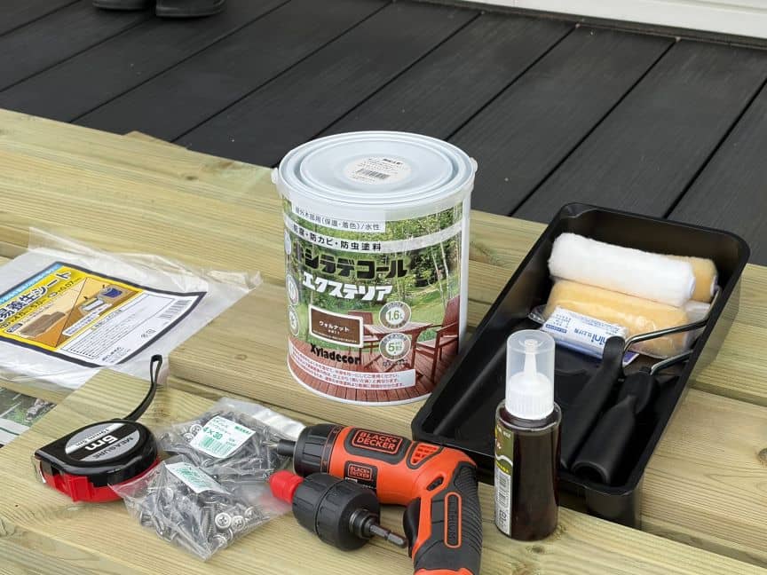 DIY事例集TOPへ 条件を指定して検索 カラー検索 全て クリア系 白系 黄色系 オレンジ系 明るい茶系 濃い茶系 黒系 緑系 グレー系 赤系 青系 下塗り用 カラー検索でどの系統の色にどの製品のどの色目が含まれているのかを以下のリンクでご確認いただけます。 制作物の種類 全て ウッドデッキ 外壁・ウッドフェンス テーブル・ベンチ 花台・小物 小屋・物置・その他 キーワード検索 検索する ホーム>DIY事例集トップ>水性キシラデコールエクステリア ウッドデッキ コメントウッドデッキの周囲からの視線が気になったので、DIYでアルミ柵に木板を取り付けました。 ドリル穿孔や木材の塗装など初めてでしたが、なんとかなりました。(自己採点70点ぐらい) 水性のキシラデコールは無希釈で使えて溶剤臭も無く、使いやすかったです! 製品名水性キシラデコールエクステリア カラーウォルナット キシラデコール 50年以上の実績が語るプロが認めた仕上がりと耐久性 発売以来50年以上の実績を持つ木材保護塗料の定番ブランド。多くの採用実績が高い防腐・防カビ・防虫効果を証明しています。 キシラデコールアクオステージ高い着色力によりさらなる耐久性を実現! 耐候性に優れた顔料を高濃度に配合し、「高着色」と「高耐久」を実現。メンテナンスにも最適です。 キシラデコールフォレステージHSキシラデコールフォレステージの顔料を高濃度に配合! キシラデコールフォレステージの性能はそのままに、高着色の新商品。耐候性も高く、塗り替えに適しています。 キシラデコールフォレステージキシラデコールの性能をそのままに乾燥時間の短縮と低臭性を実現 新処方により、優れた「乾燥性」と「低臭性」を実現した新しいタイプの木材保護塗料です。 キシラデコールやすらぎ ナチュラルで透明感のある仕上り 木の色や質感、木目の美しさをそのまま生かした、透明感のある仕上がりを実現しました。 キシラデコールコンゾラン よみがえる「強さ」と「美しさ」 塗膜の質を徹底的に追及しました。「強さ」と「美しさ」を兼ね備えた塗料です。 キシラデコールインテリアファイン 内外揃うキシラデコールカラー キシラデコールインテリアファイントップコート 木目を活かしたクリアー仕上げ キシラデコールインテリアファインを美しく保護するトップコートです。 キシラデコール白木やすらぎ 白木の美しい風合いを生かしながら変色・劣化から守る キシラデコールの性能にUV(紫外線)カット効果をプラス。白木の風合いを生かしながら木部の劣化・変色を防ぎます。 水性キシラデコールエクステリア 環境にやさしい水性タイプのキシラデコール 水性キシラデコールエクステリアは、油性キシラデコールと同レベルの耐久性をもちつつも、より環境にやさしく、使いやすい商品です。水性キシラデコールエクステリアで、エコで快適な塗装を。 水性キシラデコールウッドコート 特殊な塗膜(半造膜)で明るく仕上がり高耐久! 塗膜の3大特長(柔軟性・通気性・密着性)により、業界最高クラスの耐久性を発揮します。 また、色つきが良く、古材や濃い色の木材でも明るく仕上げることができ、塗り替えに最適です。 コンゾラン 抜群の耐久性で木部を守る、環境にやさしい水性ペイント 鮮やかなヨーロピアンカラーがラインアップ。柔軟な塗膜で木材を守ります。
